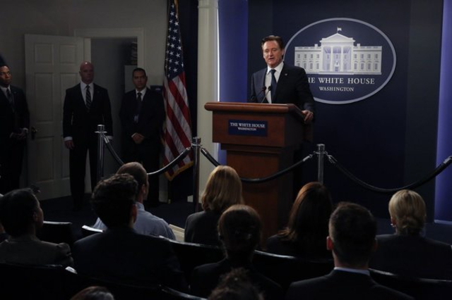 Lovett quit the White House in 2011 to chase his Hollywood dreams. At the screening yesterday, he insisted writing about the presidency was not his first idea. “I wanted to write about anything but the White House,” he said, adding that he was sure that anything he wrote about the executive mansion would be a “long scream.”