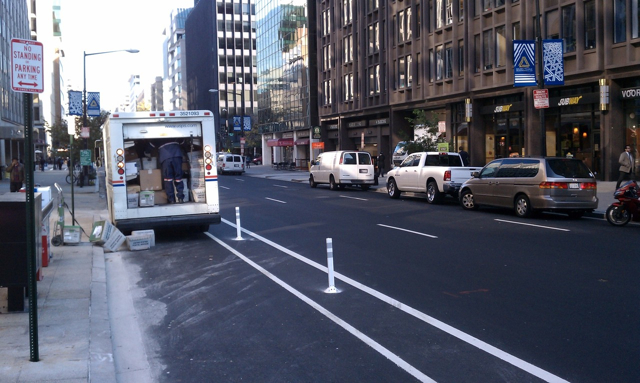 The new bike lane on L Street NW might not be perfect, but it is convenient for those crosstown commutes. That is, when it’s not being blocked by some driver who doesn’t notice the giant sharrows and dividing lines, much less the lines of bollards that demarcate the cycle track.