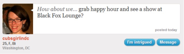 How it works: Sign up for free here, then post a date you want to go on: “How about we… check out the best dive bars the city has to offer and talk about our favorite places to get fried pickles in the city.”