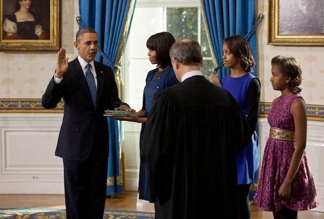 Tomorrow’s festivities and speechifying are designed to Heal Us All (we’ll be covering it here) but the oath must be administered on the January 20, because no one can pervert or misconstrue the Constitution, ever. Thanks to the do-over in 2009, President Obama will be the only other president besides Franklin Roosevelt to have taken the oath of office four times. But FDR didn’t get to kill American citizens with flying robots, so. You can read all about how the first couple is totally more jaded than they were in 2009 (kind of) here.