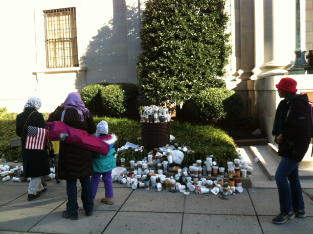 Still, our sanitation workers could use your help. Just because a trash can is full, does not mean it’s OK to stack your Starbucks cups and Big Mac wrappers next to the barrel. It’s not that difficult to carry your cup a few more blocks to the next available receptacle. Yeesh. (Oh yeah, and did you really have to organize all those used coffee cups in an “Obama 2013” message? Not sure he would appreciate, and D.C. sure doesn’t.)