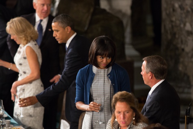 First Lady Michelle Obama and House Speaker John Boehner at yesterday’s inaugural lunch (Getty Images)