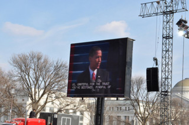 A Jumbotron used during the 2009 inauguration. Photo by ajsundbyDuring last week’s inaugural festivities, some people standing near the Washington Monument missed much of President Obama’s swearing-in speech as a Jumbotron’s audio and video faltered. (See video below.)