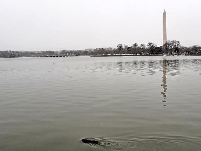 Cold weather and cloudy skies do not stop the hardest working resident of the Tidal Basin. Photo by biketripper.
