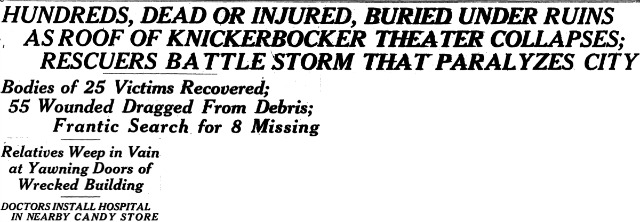 It was on this day 91 years ago that the Knickerbocker Theatre in Adams Morgan collapsed under the weight of two days worth of snow, killing 98 people and injuring 133. The collapse occurred after 28 inches of snow had fallen on the city and just as a performance was taking place; it still ranks as one of the worst disasters in the city’s history.