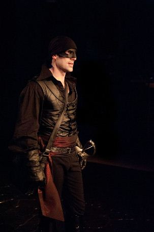 Danny Gavigan as Zorro, photo by Andrew ProppOver the past several years, the Helen Hayes Award-winning Constellation Theatre Company has deservedly earned a strong reputation through bold choices in material, inventive staging and strong performances. In times where black box theater can often be overly weighty and morose, this company isn’t afraid to add some flair, style and color. Given that context, it was both appropriate and exciting that Constellation would choose Zorro as its first world premiere production. Who wouldn’t want to spend two hours getting their buckles swashed by a caped crusader?