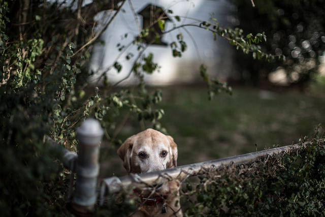 The framing and depth of field of this image turns a simple portrait of a neighborhood dog into a beautiful story. Photo by ddimick.