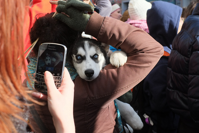 This husky has clearly mastered the skill of fashion model, batting those puppy blues at two different cameras. Photo by Veeresh_ai.
