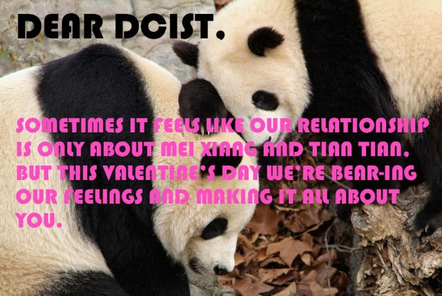 The National Zoo kinda outdid itself with this one. As part of a promotion for Critter Cupids—a picture of your favorite animal with a personalized message for a loved one—the zoo sent us the card above. Pretty great, huh? But let’s be fair, National Zoo—while we love the giant pandas, we’re also suckers for elephants being bathed, iPad-wielding apes, Andean bear cubs, pink flamingo chicks, cheetahs, and much more.
