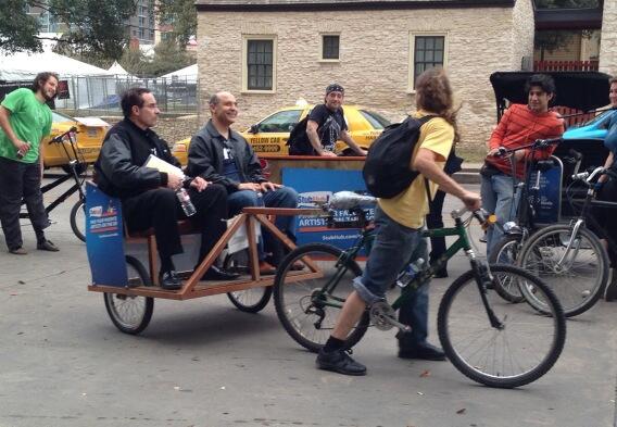 And now comes a picture from his weekend foray to the South by Southwest conference in Austin, Tex., where he and Deputy Mayor for Planning and Economic Development Victor Hoskins jumped in a pedicab. According to Tiffany Thacker of the Washington, D.C. Economic Partnership, Gray and Hoskins had to get from one place to another in a short amount of time, but many roads were blocked off for the conference. Ergo, the pedicab.