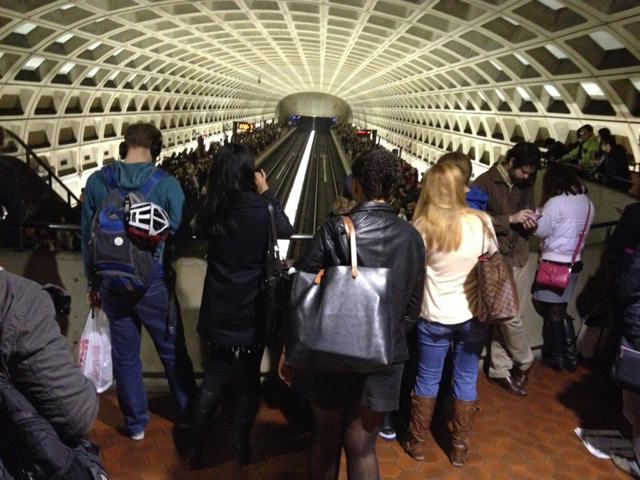 Metro made riders unload at Pentagon City to accomodate single-track operations. (Photo by Melanie Phung)