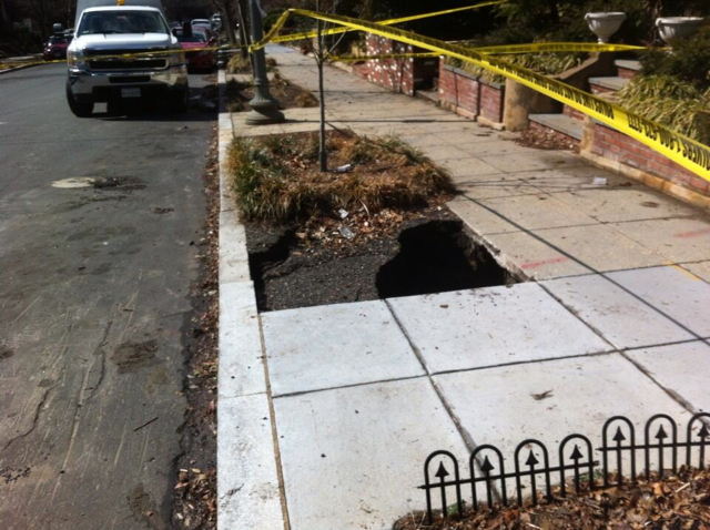 Adams Morgan residents interrupted their afternoons to stand outside their houses gawking at the pavement across the street after a sinkhole opened up on a Biltmore Street NW sidewalk.