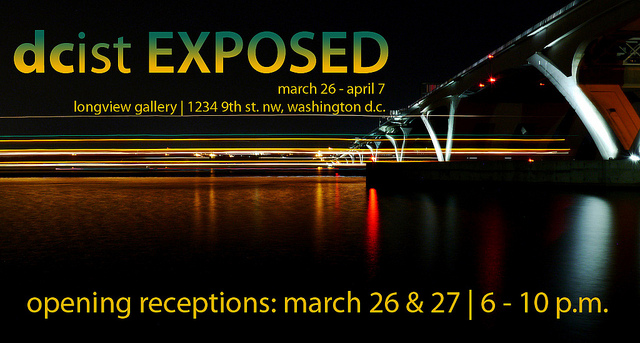 Did you miss the DCist Exposed opening night party last night? Lucky for you, opening night actually lasts two nights. (It’s a quarter-Hanukkah miracle!) Admission is $15 at the door, and once inside, you can check out all the great photos on display this year, such as this nighttime shot of the Woodrow Wilson Bridge by Bryan Bowman. And if you like it so much, you can even buy a copy.