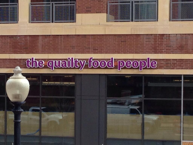The quailty food people? Is Giant trying to hint that its new market will specialize in quail and other small fowl? Well, no. Just a botched installation. The Daily Beast’s Robin Givhan spotted construction workers taking down the lousy sign. Now all the new Giant advertises is “food people.”