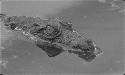 (Adopt Films)There are two big-eyed supporting characters who walk away with Miguel Gomes’ film Tabu. One is dotty dowager Aurora, peering elegantly from behind Swifty Lazar shades. The other is a crocodile.