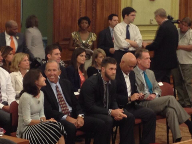 Vincent Orange says what no elected official should say: Orange could have closed the ceremony with, oh, “Go Nats!” or something innocuous like that. Instead, he opted for a exuberant “Let’s play ball!” Hmm. Something about an elected official uttering the phrase “Let’s play ball” inside a capitol building already beset by political scandals seems a little off.