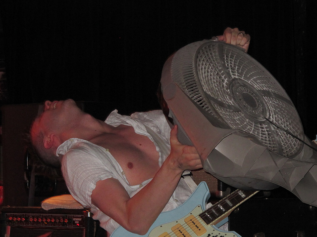 Regardless of who or what Korvette was channeling, he was having a great time. He commented that the entire crowd had remained compliant to the Black Cat’s signs that urged against crowdsurfing and stage diving before saying, “We found a loophole—stage surfing and crowd diving.” While nobody participated in any of the above airborne acrobatics, the suggestive snaking of Korvette and the band’s heavy riffing (primarily from Honeys and King of Jeans inspired a lot of beer tossing and moshing.