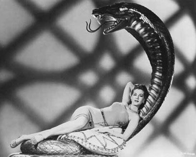 Maria Montez and friendWhen the beautiful Tollea is kidnapped, her fiancé heads for a remote Pacific Island led by a treacherous villainess with a no tolerance policy for strangers. Maria Montez plays a dual role as the innocent fiancée and the titular snake charmer. Director Robert Siodmak was best known for noirs like Phantom Lady and The Killers, but this is a delirious Technicolor camp classic that is reportedly avant garde filmmaker and Hollywood Babylon archivist Kenneth Anger’s favorite movie. Screened as part of the National Gallery of Art’s Universal at 100 series, which also offers the W.C. Fields classic Never Give a Sucker an Even Break this weekend.