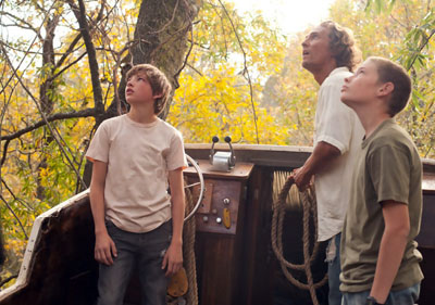 Tye Sheridan, Matthew McConaughey, and Jacob Lofland (James Bridges/Roadside Attractions)Noble menfolk are stymied time and again by unreliable women in the new film by Jeff Nichols. Mud is a coming of age story set on an Arkansas stretch of the mythical Mississippi River, where 14-yr old Ellis (Tree of Life’s Tye Sheridan) and Neckbone (Jacob Lofland) explore a deserted island and discover a speed boat caught up in a tree and the titular dirty hero. Matthew McConaughey is at his unwashed best as he continues to take the kinds of roles Robert Mitchum might have, but Nichols, who last directed Take Shelter, can’t shape full performances out of the young actors who lead the expedition. And it’s astonishing how much a supposed indie production shortchanges women. Like a Boyz n the Hood on the Mississippi, most of the evil visited upon the film’s central characters comes as the result of a cheating lover or an uncaring mother, while Men Who Have Killed get to be all mythical. Mud has the feel of a 1970s indie, its muted palette looking lovely on the 35-millimeter print the West End Cinema will be showing. As rare as commercial 35-millimeter prints are these days, I wish I could just recommend it on that account. Then again, I’ve seen many movies much worse than Mud this year, so go see it if you like McConaughey and don’t mind a movie whose idea of a developed female character is heartless white trash Juniper (Reese Witherspoon).