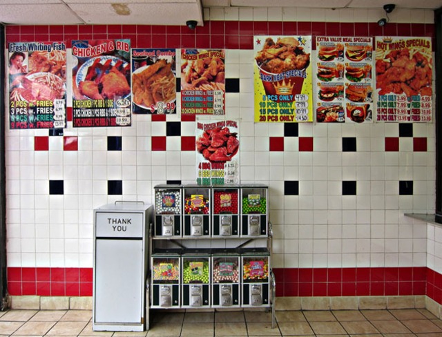 It’s just a neighborhood fried chicken joint, but NCinDC captures a colorful bucket of commercial design. Present generations may look upon this greasy landscape with horror, but who knows if future generations may smell in its value-laden combos a whiff of nostalgic fries with that aesthetic shake. (EXIF)