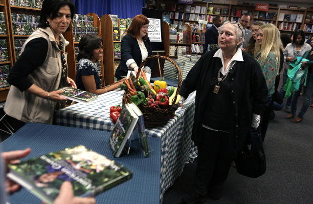 Michelle Obama made a jaunt up to Politics & Prose yesterday to sign copies of her 2012 book about the White House’s vegetable and herb garden. The first lady’s book, American Grown: The Story of the White House Kitchen Garden and Gardens Across America, takes a look inside the cultivation of the garden behind the White House, and features content about the importance of eating freshly grown foods.