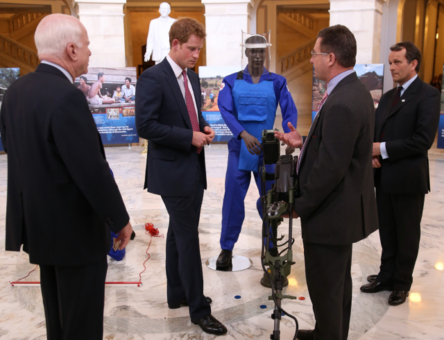 For those interested in actual policy, however, Harry and McCain left behind a pair of manikins dressed in the suits people working for the HALO Trust wear while attempting to clear landmines in Africa, Asia, and South America. Harry’s mother, Princess Diana, was a leading booster of the organization.