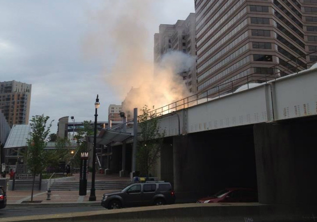 A fire at the SIlver Spring Metro stop. Photo by Catherine Merwitz.