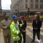 Crews from DC Water and the District Department of Transportation continue to be stationed around the clock at the sinkhole that opened up Tuesday at the intersection of 14th and F streets NW.