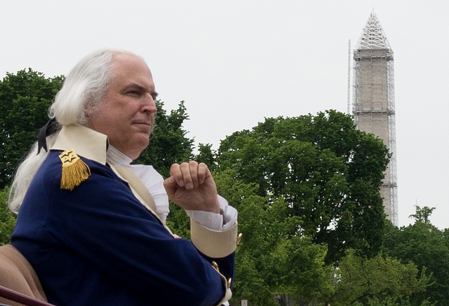 “George Washington” looking at his Monument. Photo by vpickering.