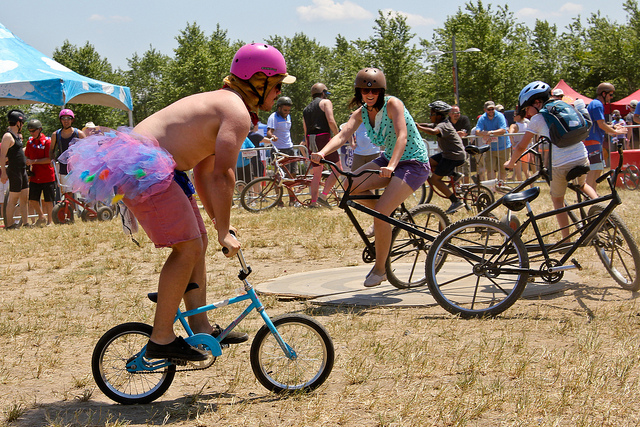 A man in a tutu at the Tour de Fat. Photo by Joe Flood.