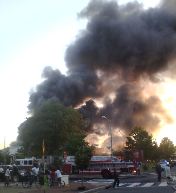 The fire sent up a massive plume of black smoke visible across much of D.C. and the immediate suburbs. It also made for an eerie backdrop to Nationals Park ahead of tonight’s game there.