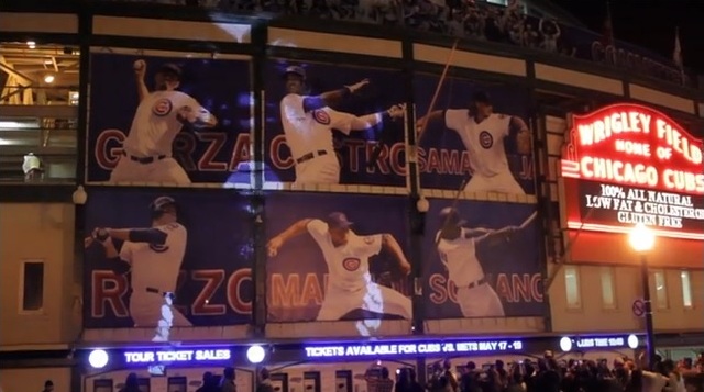 Projection of Kanye West’s “New Slaves” on Wrigley Field in Chicago. (via Chicagoist)