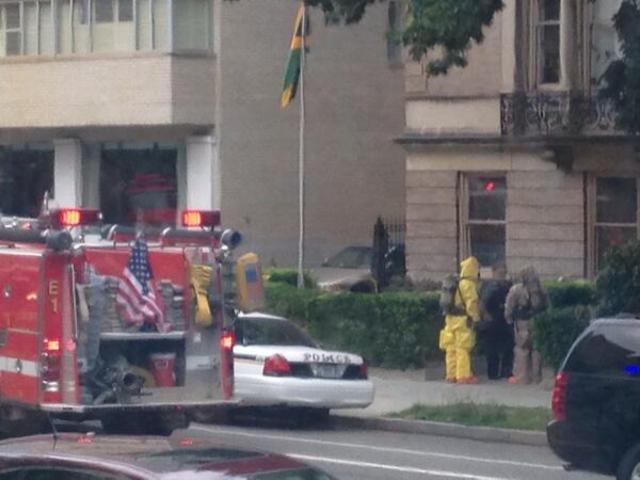 Many Twitter users in the busy Dupont Circle neighborhood questioned the police presence and shared details from the scene. One woman shared a photo of two people in hazmat suits standing outside the embassy, located at 1520 New Hampshire Ave. NW.