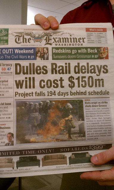 A story about to Silver Line construction? Goes perfectly with an image of flame-filled riots in Greece.