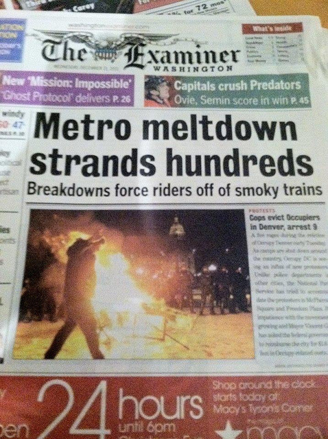 And a Metro breakdown that left hundreds of riders stranded on a smoke-filled train? Another protest fire! (This one in Denver.)