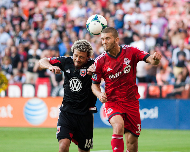 United’s Nick DeLeon vies with Toronto’s Ryan Richter. Photo by Francis Chung.