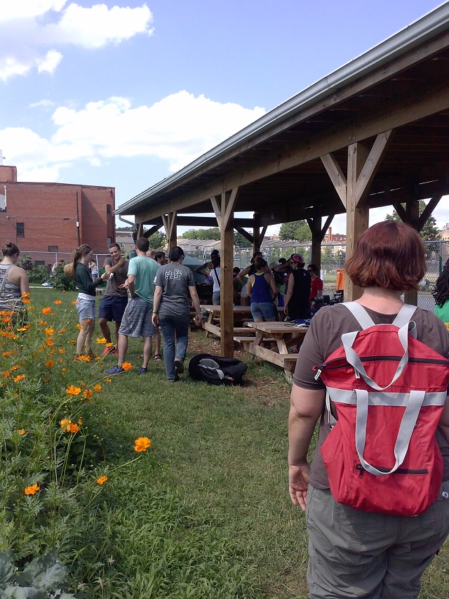 About 100 people came out to help clear plots so produce could be grown. Hilmy, who said he was approached by Flavorpill to do the event, usually welcomes volunteers every third Sunday of the month. After the farming was done, the volunteers were given free ice cream, as well as grub from food truck Rito Loco.