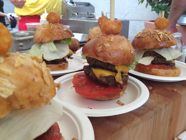 If you noticed the air in Chinatown yesterday was filled with the wafting scents of grilled meats, melted cheese, and loud burping, it’s because inside the courtyard of the Hotel Monaco, a few hundred gourmands dared to gulp down 10 different—and often extravagant—one-off burgers concocted for a gut-busting charity event.