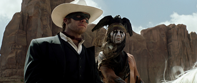 Armie Hammer and Johnny Depp (Disney)A fanged rabbit eats a scorpion. It’s a vision of the American West as a feral landscape, where rules are made to be broken and cuddly animals scrape the desert of natural poisons. This stark view of nature would not seem out of place in a Werner Herzog movie. Imagine Herzog’s Lone Ranger, with a hammy Nicolas Cage stumbling drunk out of a saloon, a conflicted anti-hero. This is not that Lone Ranger, but, contrary to reports, it’s not the worst of all possible Lone Rangers. But at two and a half hours, it’s too much, and not enough.