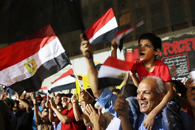 People dance and cheer in Tahrir Square, the day after former Egyptian President Mohammed Morsi, the country’s first democratically elected president, was ousted from power on July 4, 2013 in Cairo. (Photo by Spencer Platt/Getty Images)
