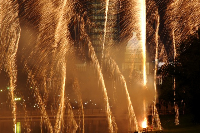 Last night was sticky, humid, and disgusting. But even though the summer heat continued into darkness, it paid off for the masses who crowded the National Mall and other vantage points around D.C. to watch the National Park Service’s annual fireworks display. For 17 minutes—officially, that is—the skies over the scaffolding-clad Washington Monument, Lincoln Memorial, and Tidal Basin filled with exploding doses of gunpowder, magnesium, lithium, barium, and copper to light up the night.
