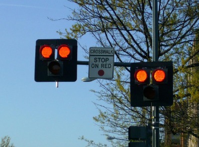 A HAWK traffic signal in use on Georgia Avenue in 2009. Image from DDOT.The District Department of Transportation will deploy its latest pedestrian-activated traffic signal at a high-traffic intersection where four months ago an elderly woman was struck and killed by an oncoming vehicle.