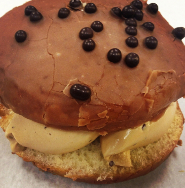 Who needs to be envious of New York City’s cronuts when Astro will serve up a doughnut sliced in half and filled with ice cream? For the duration of this week, Astro, located at 1308 G Street NW, will be serving up doughnut ice cream sandwiches in two varieties. The first style, pictured above, features mocha java ice cream—made with Brooklyn Roasters coffee—scooped between the halves of a chocolate pastry ring. The other wedges raspberry verbena ice cream inside a passion fruit doughnut.