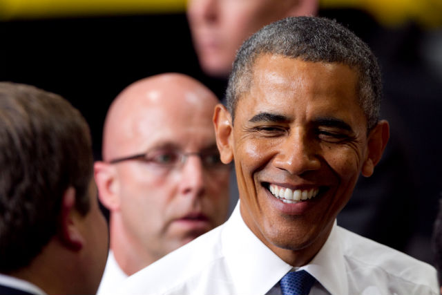 U.S. President Barack Obama greets people after making a speech about the economy and jobs at an Amazon.com Fulfillment Center July 30, 2013 in Chattanooga, Tennessee. (Photo by Jessica McGowan/Getty Images)