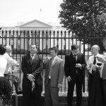 Tourists on Segways pass the White House on Constitution Avenue NW: