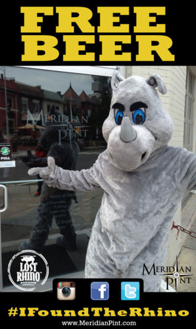 If you find the rhino, snap a photo with him then post it to a social media site using the hashtag “IfoundtheRhino.” One photo will be selected from today until Friday. Those lucky five people get free beer that day and for the rest of the week at Meridian Pint.