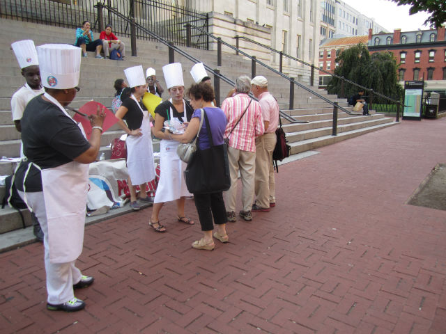 The push from the Paid Sick Days for All Coalition is timed to coincide with Summer Restaurant Week, according to Naomi Iser of the D.C. Employment Justice Center. The idea to dress up as ill chefs was first tested last Halloween and is being trotted out at several locations in D.C. this week.