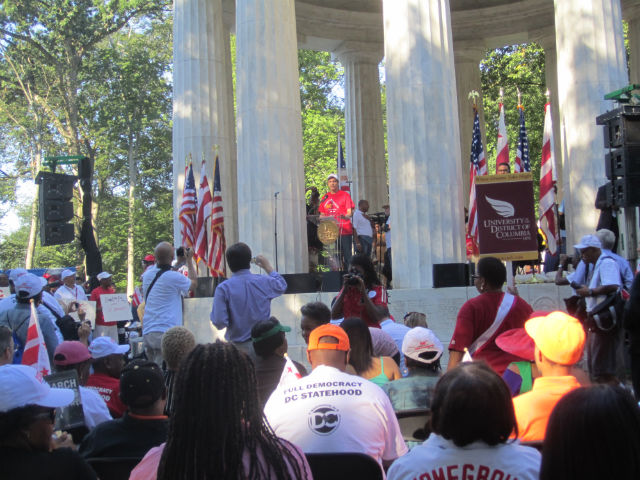 To mark the 50th anniversary of the March on Washington, tens of thousands of people gathered near the Lincoln Memorial to listen to House Minority Leader Nancy Pelosi, Rev. Al Sharpton, Martin Luther King III, and dozens more speak about a variety of hot-button topics, including voter ID law, civil rights, discriminatory laws, and more. Additionally, a pre-march rally for D.C. statehood was held at the D.C. War Memorial, where Mayor Gray and other D.C. politicians spoke out for statehood rights.