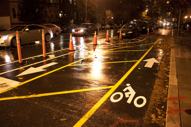 The 15th Street cycle track in its better, albeit wetter, days. (Photo by Andrew Bossi)