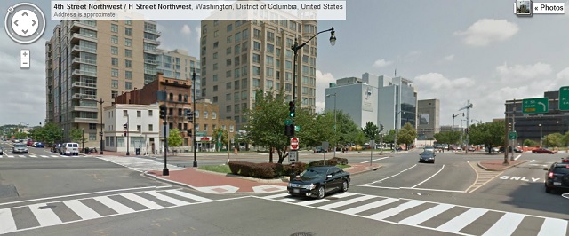 An image of the intersection of 4th Street and Mass. Ave. NW from Google maps.